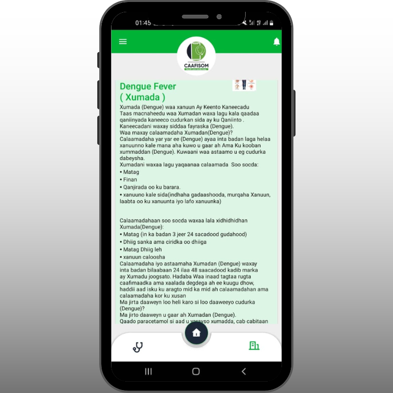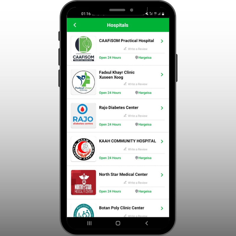 CAAFiSOM was founded on a simple yet revolutionary idea, that everyone should have access to the best healthcare available on their terms. Now the leading Healthcare technology provider in Somaliland and the region, CAAFiSOM is proud to support Somaliland’s MoHD. Our system links government hospitals with private ones, enabling every citizen to have access to their medical records everywhere. They can also book tickets and get additional information through the CAAFiSOM App or website.
