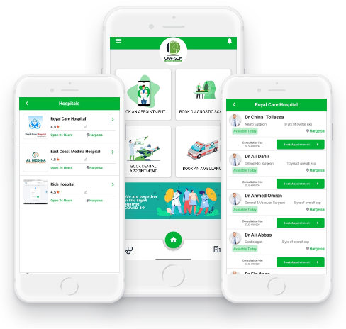 Access Online Booking with Somaliland's top Hospitals on the CAAFISOM App. Connect with doctors online, available 24/7, from the comfort of your home.